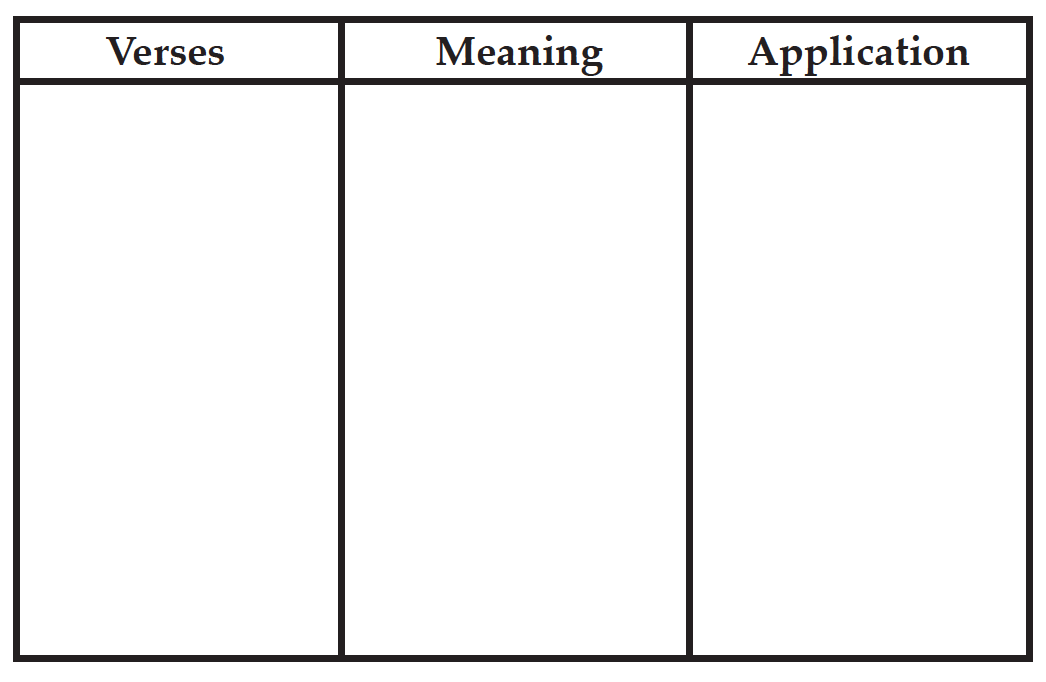 When a verse speaks strongly to you, 1) copy the verse on a sheet of paper, 2) summarize what the verse means, and 3) write down how you can apply that verse to your life.