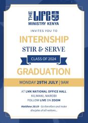 Internship STIR/S.E.R.V.E. Class of 2024 graduated on Monday 29th July 2024 at The LIFE Ministry Kenya National Office, Nairobi. Congratulations to all the 16 participants who graduated. We continue praying that the fruit of their ministry will be multiplying disciples and gospel movements established among all peoples.